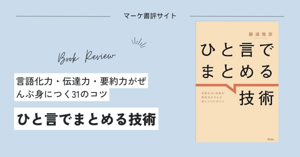 要約『ひと言でまとめる技術』言語化力・伝達力・要約力がぜんぶ身につく31のコツ【書評】